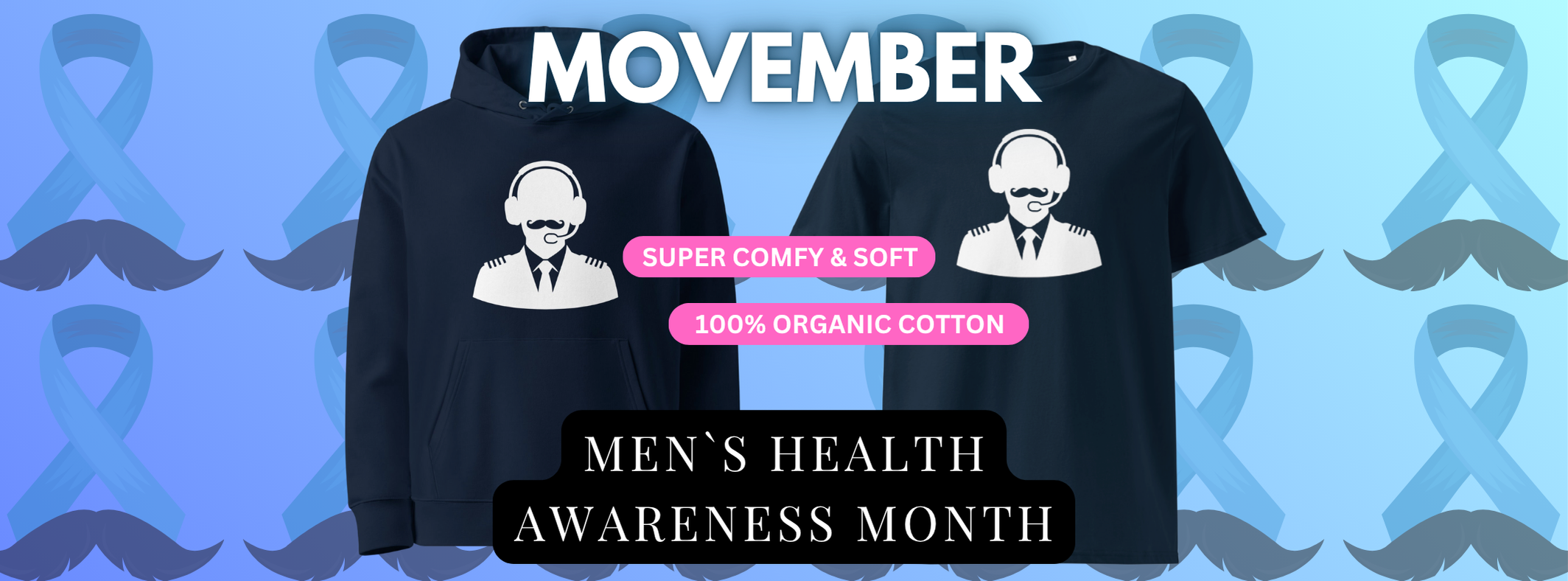 Pilot 100% organic cotton Hoodie – Captain Mustache design (MOVEMBER INSPIRED)