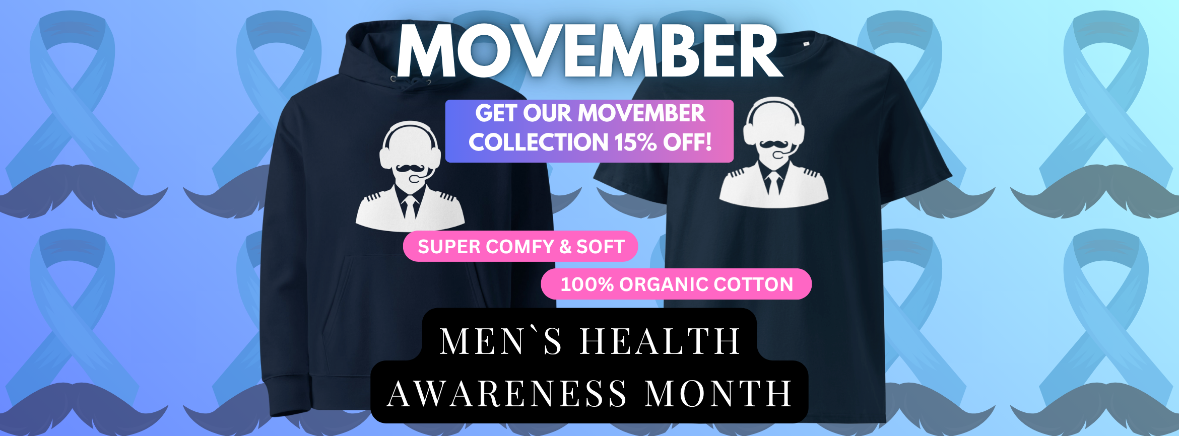 Pilot 100% organic cotton T-shirt – Captain Mustache design (MOVEMBER INSPIRED)